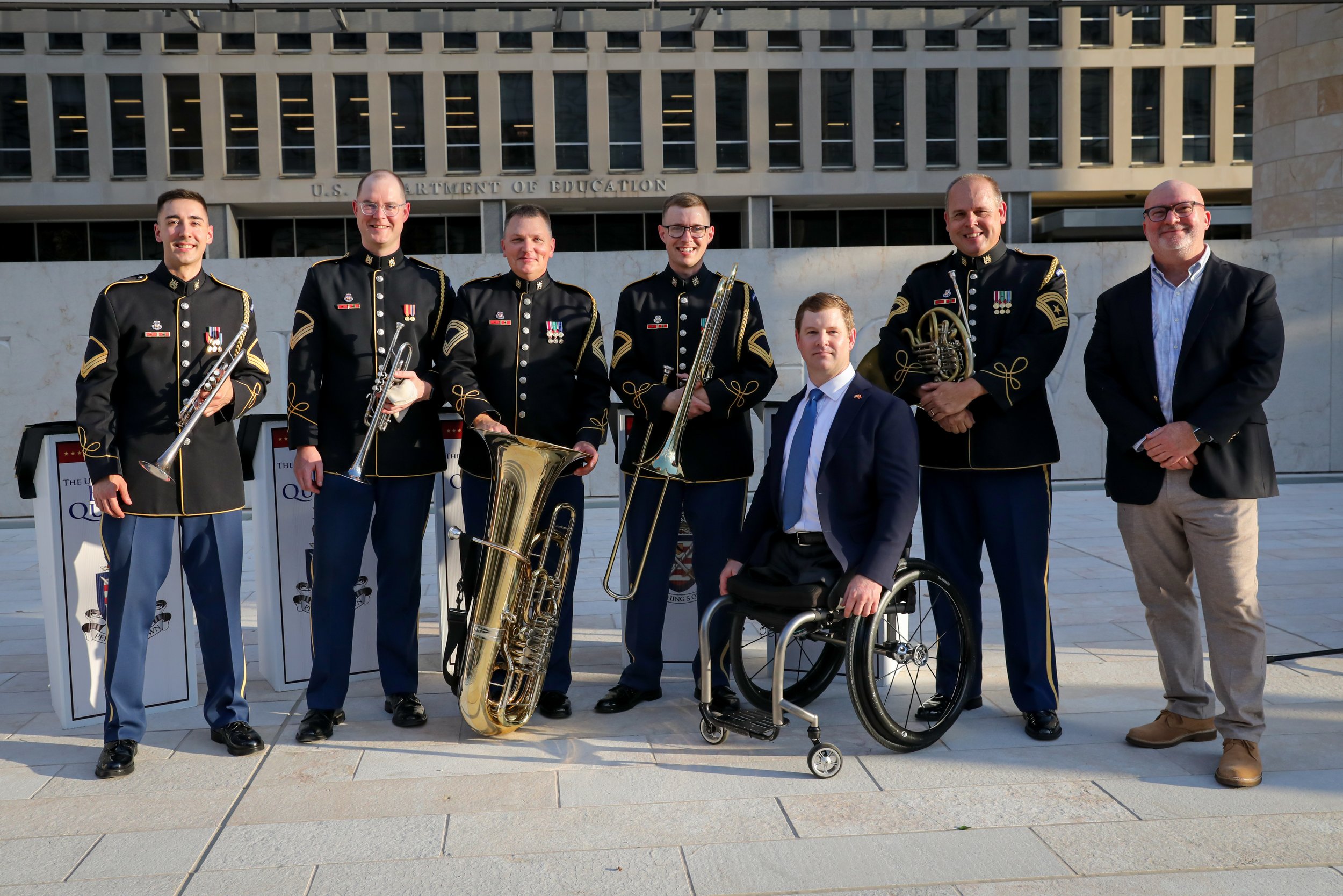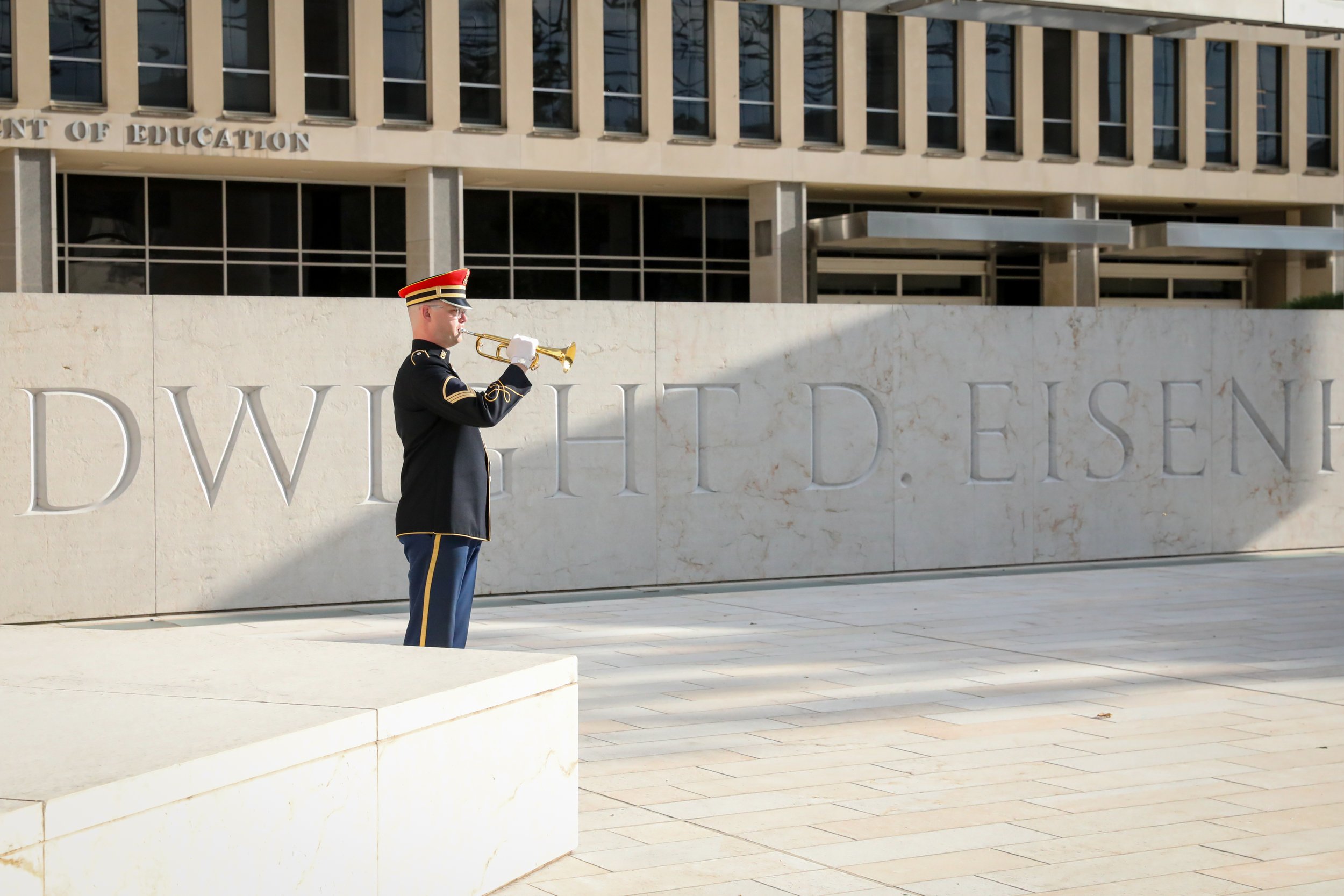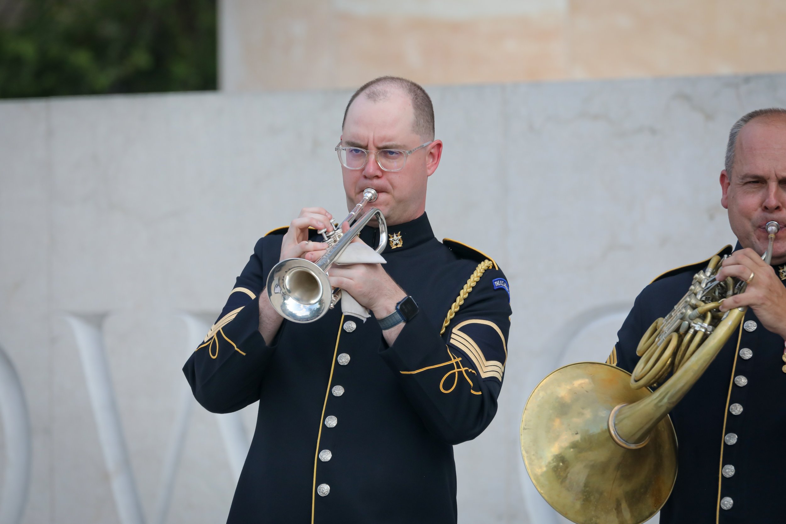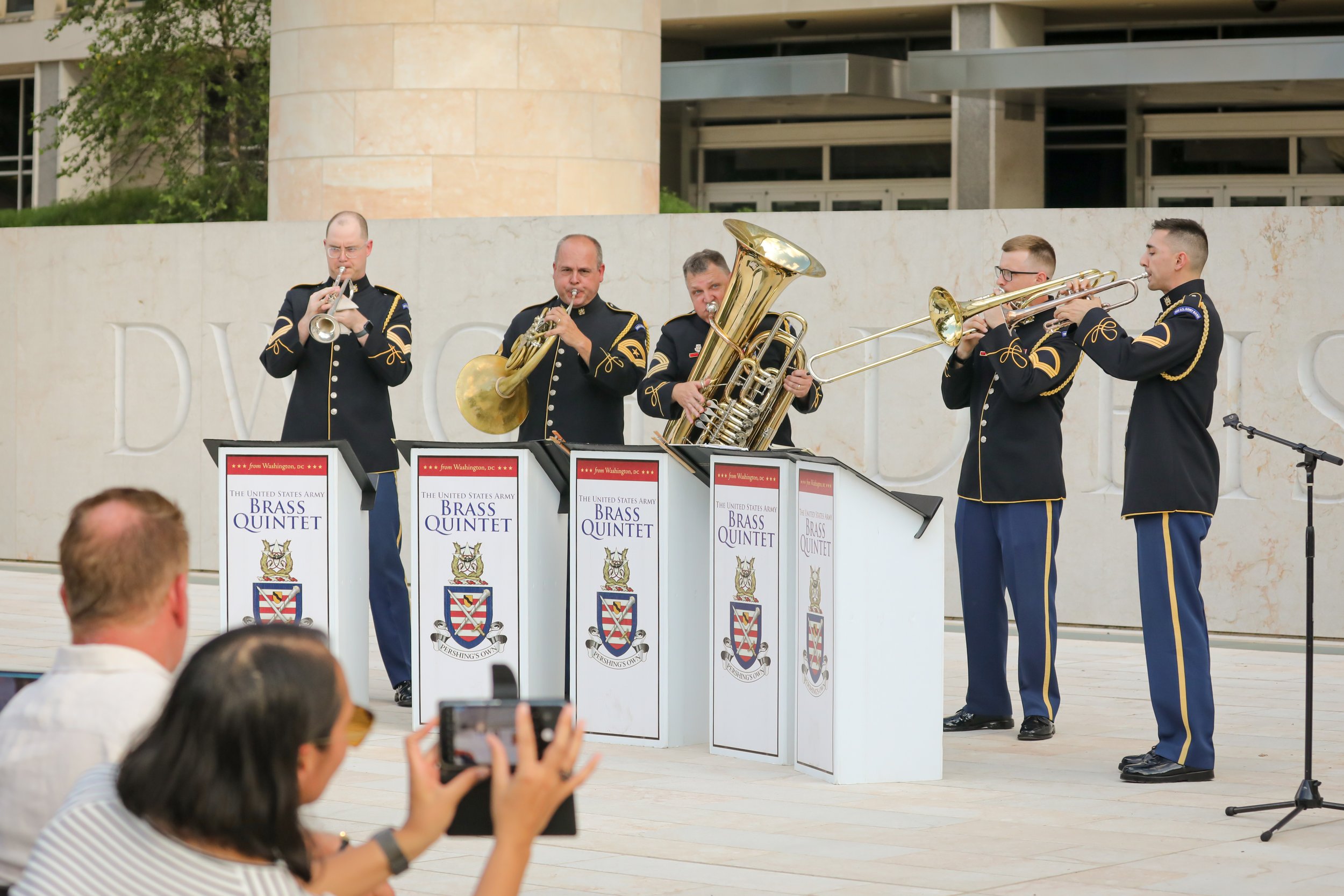 On June 6, 2024, the Trust for the National Mall hosted a commemorative concert at the Dwight D. Eisenhower Memorial marking the 80th anniversary of the World War II D-Day operation. Audience members, families and groups picnicking on the lawn joined us for remarks from a Purple Heart veteran and a performance by a quintet from the U.S. Army Band “Pershing’s Own” during the golden hours of sunset.