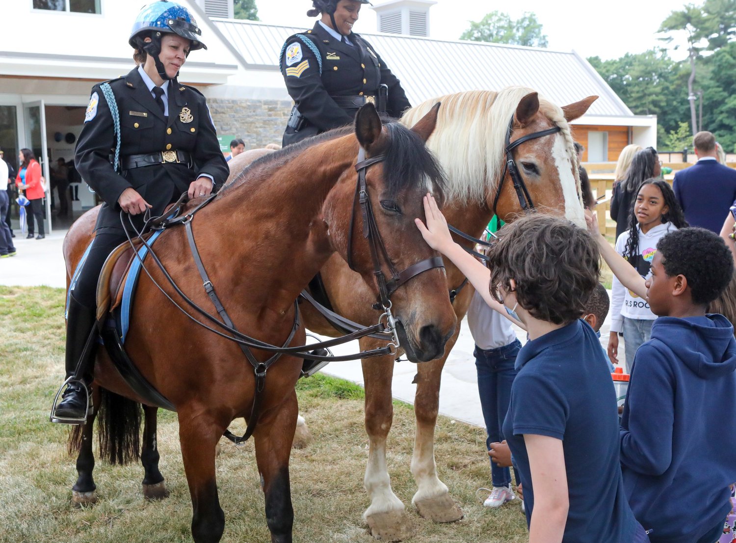The Mounted Unit is one of the oldest and most beloved equestrian units in the U.S. Starting in 1934 with just one horse rented from a local stable, the unit expanded over the next several decades to provide guidance, protection and a friendly equine presence on the National Mall. The Trust worked in partnership with the National Park Service to replace the outdated and inadequate stables, built as a temporary shelter in 1976 for the U.S. Bicentennial, with modern and sustainable structures and adequate space for exercising the horses. The new Education Center allows visitors to learn about, meet and enjoy the horses.