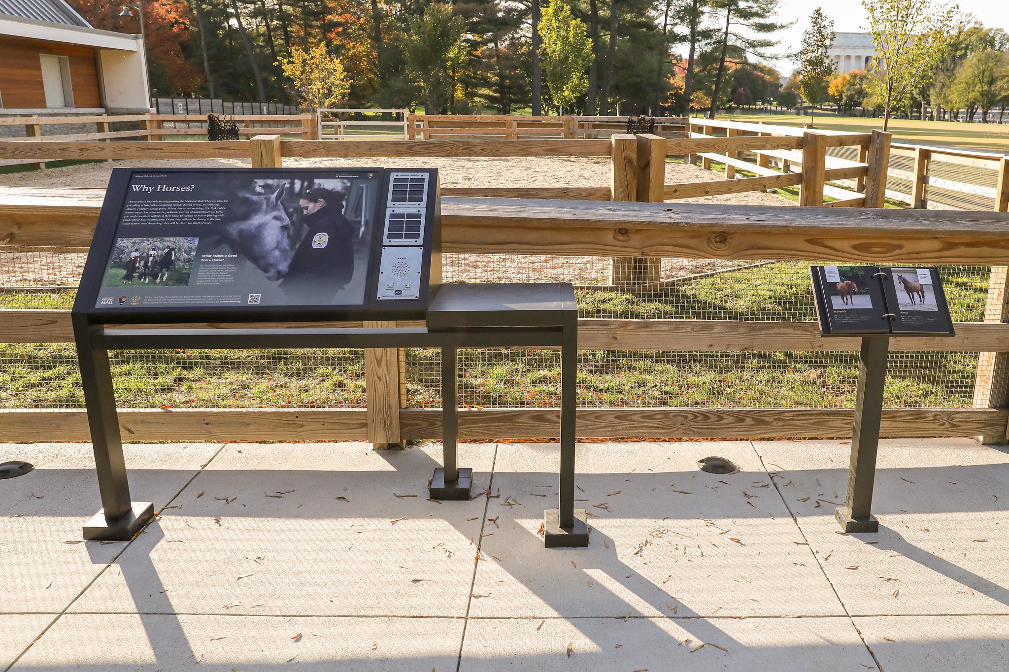 A welcoming education center with a self-guided tour, educational information on the horses and a history of horse mounted patrol operations on the National Mall.
