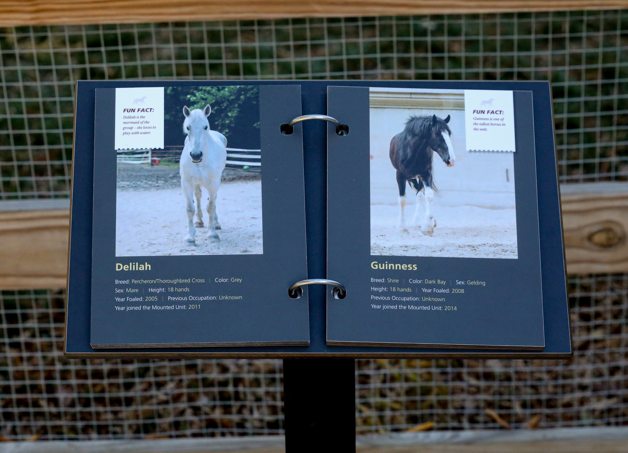 Check out newly added exterior signage and flipbooks that tell the story of the facility and introduce you to the horses and their stories!