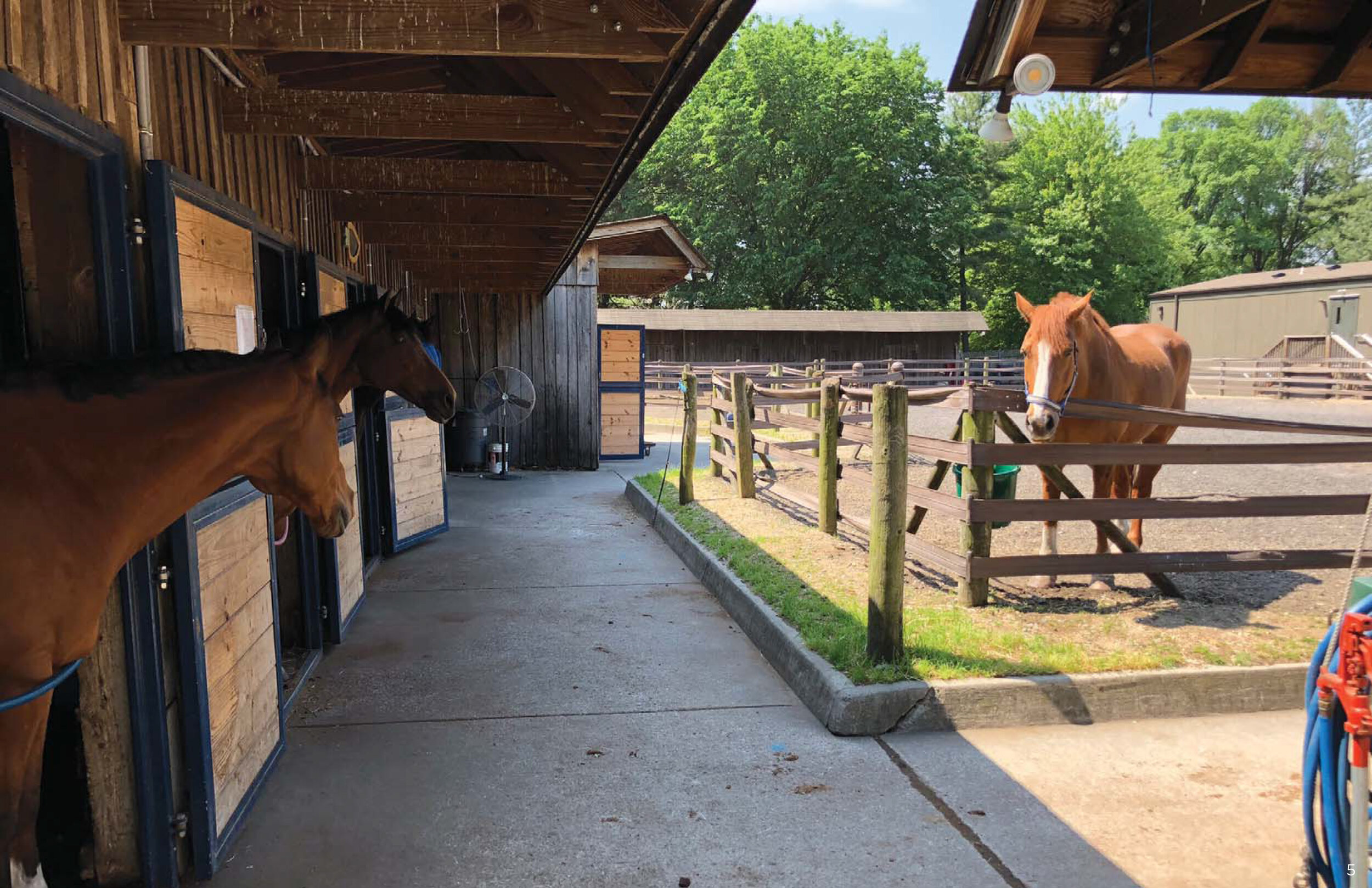 A total of 14 stalls, including a medical stall and a medical paddock, all built to ensure proper air flow and space for the horses housed onsite.