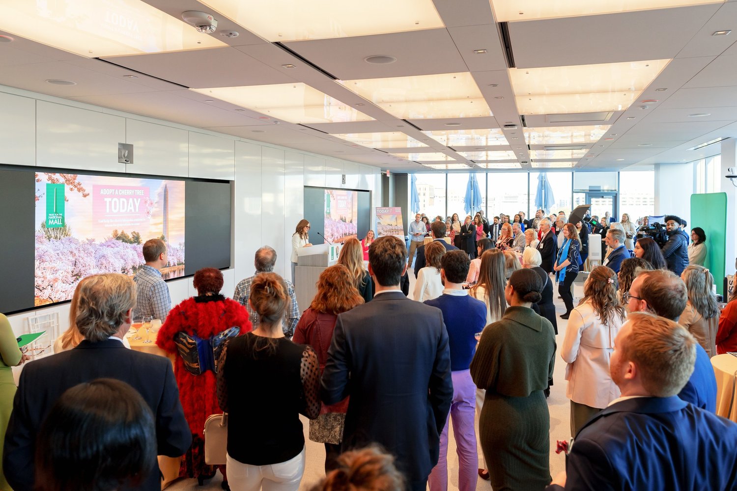 Speakers shared details about the important work supported by our Adopt-A-Cherry-Tree campaign and our mission and goal of endowing the care and maintenance of all 3,700 cherry trees on the National Mall. The Trust for the National Mall is proud to partner with the National Park Service to steward the trees. The cherry trees require year-round care and the planting of nearly 100 saplings each year to ensure the iconic pink bloom on the Tidal Basin will continue for the next generation. Damage from ever increasing foot traffic, effects of the changing climate, storms and daily flooding pose an ongoing threat to the trees. To find out how you can support the trees, visit the link below.