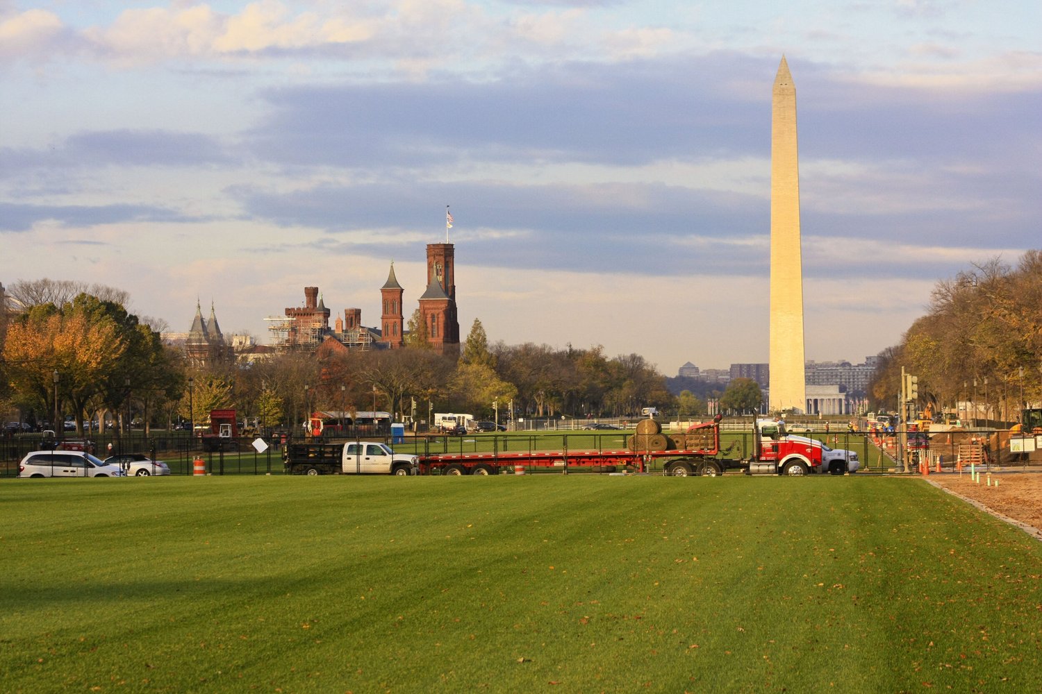 Turf restoration on the panels between 3rd and 12th streets was completed over four years, restoring 20 acres of grass along the National Mall and bringing the green back to America’s Front Yard. All the elements of the turf restoration project were designed to create a healthy and water efficient landscape. The irrigation system was an essential part of the project, which also included excavation and removal of up to five inches of damaged soil, re-engineered soils to resist soil compaction and improve drainage, one million gallons of underground cisterns for rainwater harvesting and reuse, drought resistant turf varieties, and beautiful granite curbing to protect the lawn edges.