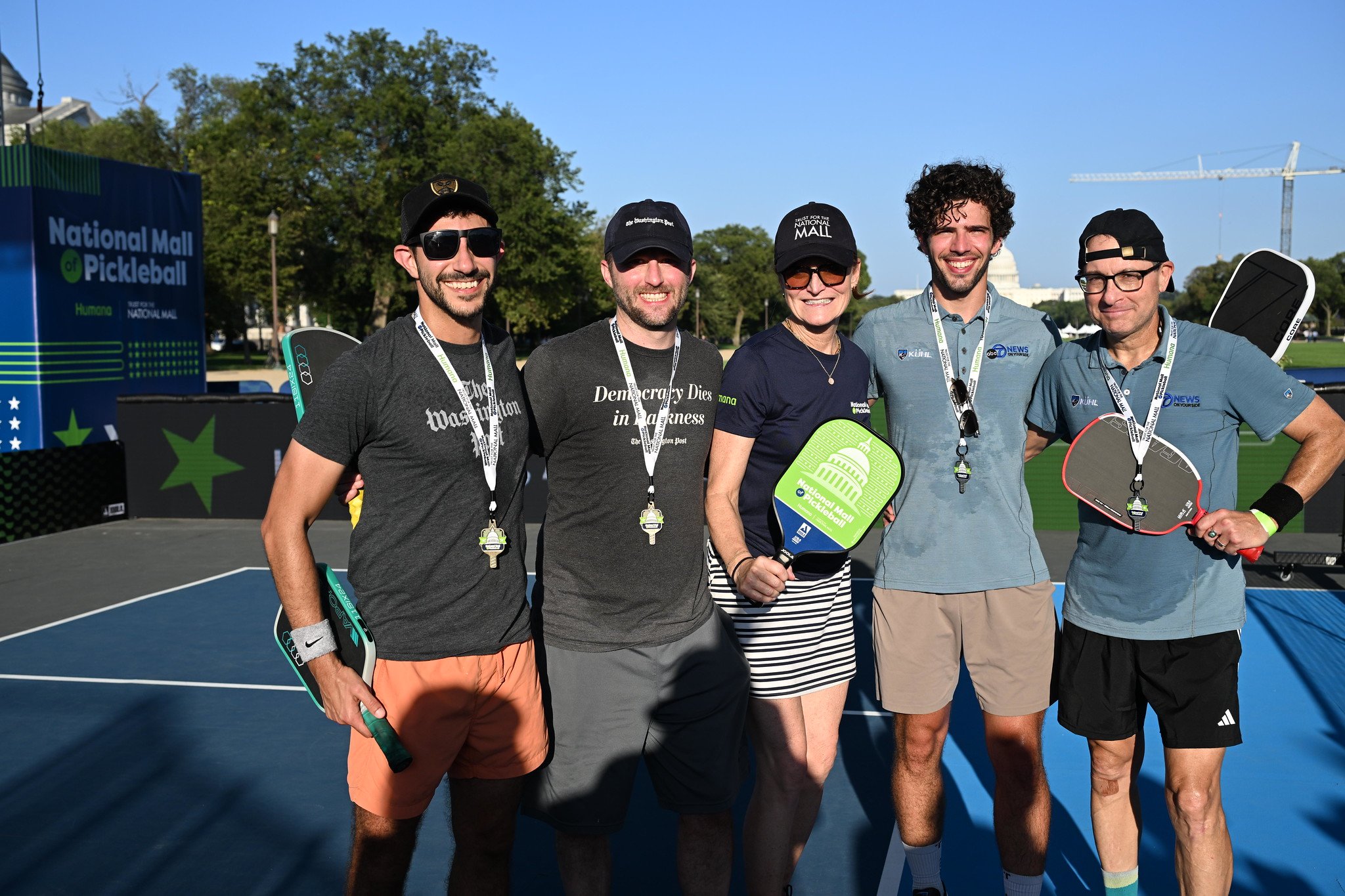 Opening day was filled with dinks, community and excitement on America's Front Yard. Players were bringing "Moves That Serve" on center court and all the side courts for advanced sign-ups and walk-on play! Spectators took in a healthy cooking demonstration "In the Kitchen," professional play on center court, an all-inclusive knock out round and a lively Media Match among top news bureaus that saw the Washington Post retain its title of King of the Hill. Opening day also featured a tournament among Washington, D.C. area pickleball clubs, where Village Pickle and DC Fray took home the top honors in each of their divisions.